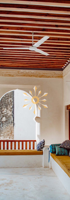 The ground floor has a lovely courtyard with a staircase leading to the 1st floor. On the first floor you have a stunning private swimming pool and bedroom 1 and 2 on each side of the swimming pool. The other 2 bedrooms are located on the 2nd floor. Bedroom 3 has a lounge attached to it and can be turned into a room for 2 little ones, with mosquito nets and is the perfect family room. Bedrooms 3 and 4 have a veranda each, so you can enjoy the view (bedroom 3 and 4 have gorgeous views of Lamu town and lovely sea breezes. All the bedrooms also come with mosquito nets and ceiling fans.The 3rd story is the chillout area of the house, partially covered by a makuti roof with the most glorious views of the ocean.